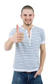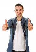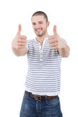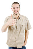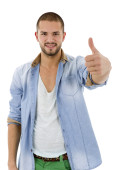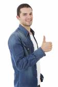 przypadkowy mężczyzna będzie kciuk w górę, na białym tle na biały