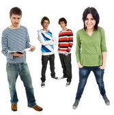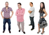 Zdjęcie "portret czterech młodych przyjaciół na białym tle" może być wykorzystywane do celów osobistych i komercyjnych zgodnie z warunkami zakupionej licencji Royalty-free. Obraz jest dostępny do pobrania w jakości wysokiej rozdzielczości do 5760x3840.