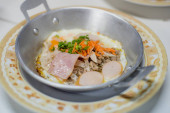 wieprzowina congee łyżka i smażonego czosnku rano tabela.