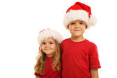 dwóch braci, grając z Boże Narodzenie kapelusz na czarnym tle