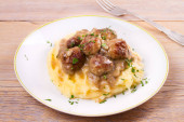 Zdjęcie "Pulpety z sosem z purée z ziemniaków" może być wykorzystywane do celów osobistych i komercyjnych zgodnie z warunkami zakupionej licencji Royalty-free. Obraz jest dostępny do pobrania w jakości wysokiej rozdzielczości do 5760x3840.