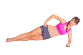 Zdrowa młoda trenerka fitness rozgrzewka przed treningiem sportowym.