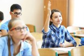 Zdjęcie "Uczennica, odpowiadając na tablicy w klasie" może być wykorzystywane do celów osobistych i komercyjnych zgodnie z warunkami zakupionej licencji Royalty-free. Obraz jest dostępny do pobrania w jakości wysokiej rozdzielczości do 5760x3840.
