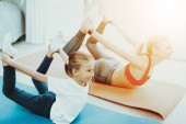 Szczęśliwa rodzina ćwiczenia z hantlami w fitness studio hantle w kształcie serca