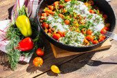 Penne kaprys z wielokolorowych makaron, pomidory i ser parmezan