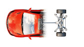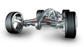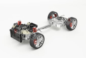 Podwoziu samochodu z silnikiem na biały izolat. renderowania 3D.