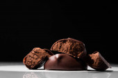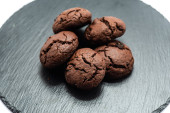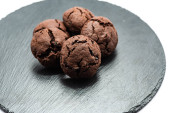 Babeczki czekoladowe z orzechami na ciemnym tle, selektywne focus