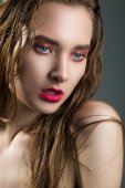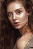 piękna kobieta głowa i ramiona portret, jasne błyszczące skóry