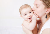 matka całuje dziecko dziewczynka w ręcznik, kiedy już je kupiłam