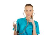Młoda kobieta lekarz lub pielęgniarka z stethocope