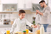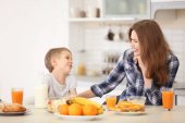 Zdjęcie "Słodkie dzieci jedzą śniadanie w domu" może być wykorzystywane do celów osobistych i komercyjnych zgodnie z warunkami zakupionej licencji Royalty-free. Obraz jest dostępny do pobrania w jakości wysokiej rozdzielczości do 5760x3840.
