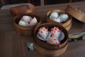 closeup of steamed buns bamboo steamer - dim sum