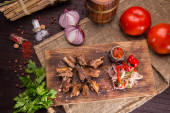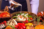 Soczysty medalion z wieprzowiny z bakłażanem, warzyw szpiku i papryki, przygotowane na grillu