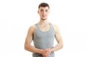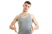 sportowy młodego człowieka w pozach t-shirt na kamery
