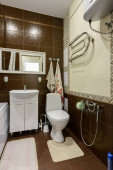 Zdjęcie "Łazienka w hotelu, umywalka i WC" może być wykorzystywane do celów osobistych i komercyjnych zgodnie z warunkami zakupionej licencji Royalty-free. Obraz jest dostępny do pobrania w jakości wysokiej rozdzielczości do 5760x3840.