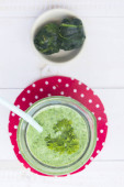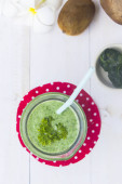 Zdrowy zielony koktajl ze szpinakiem, kiwi i cytryny.