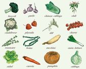 Warzywa w stylu rysowane tuszem z akwarela
