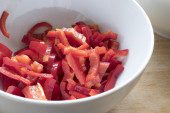 Zdjęcie "Nacięcie papryka przygotowaną żywność." może być wykorzystywane do celów osobistych i komercyjnych zgodnie z warunkami zakupionej licencji Royalty-free. Obraz jest dostępny do pobrania w jakości wysokiej rozdzielczości do 5760x3840.