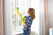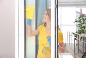 Zdjęcie "Młoda kobieta przy użyciu detergentu i szmata " może być wykorzystywane do celów osobistych i komercyjnych zgodnie z warunkami zakupionej licencji Royalty-free. Obraz jest dostępny do pobrania w jakości wysokiej rozdzielczości do 5760x3840.