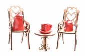 Romantyczne czerwony zestaw naczynia w kształcie serca na czerwony drobny