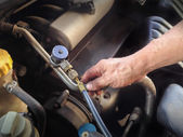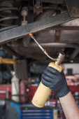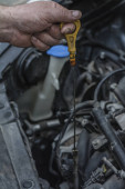 Ciągnięcie bagnet poziomu oleju z silnika. Pomiar poziomu oleju silnikowego.