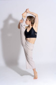 Zdjęcie "Tancerz Kobieta w studio" może być wykorzystywane do celów osobistych i komercyjnych zgodnie z warunkami zakupionej licencji Royalty-free. Obraz jest dostępny do pobrania w jakości wysokiej rozdzielczości do 5760x3840.