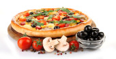 pyszne pizze z składników wokół białego na białym tle na