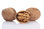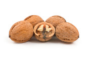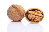 orzech włoski i pęknięty orzech włoski odizolowane na białym tle