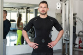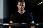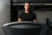 Muskularny mężczyzna w stroju sportowego w centrum Fitness