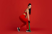 Zdjęcie "Kobieta, szkolenia przed różowy studio" może być wykorzystywane do celów osobistych i komercyjnych zgodnie z warunkami zakupionej licencji Royalty-free. Obraz jest dostępny do pobrania w jakości wysokiej rozdzielczości do 5760x3840.