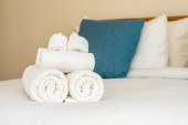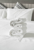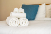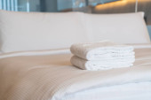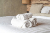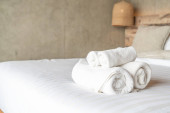 Zdjęcie "Biały ręcznik na łóżko dekoracja wnętrza sypialni " może być wykorzystywane do celów osobistych i komercyjnych zgodnie z warunkami zakupionej licencji Royalty-free. Obraz jest dostępny do pobrania w jakości wysokiej rozdzielczości do 5760x3840.