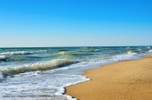 Fale Morza Czarnego na tle błękitnego nieba. Seascape morze latem