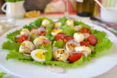 Klasyczna sałatka grecka z sosem na podłoże betonowe.
