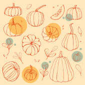 Dynie pomalowane farbami na białym tle. Kolorowe warzywa malowane na papierze. Jesienne warzywa