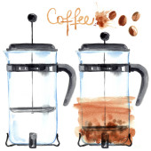 Kawa na wynos papierowy kubek malowane farbami na białym tle. Szkic jedzenie kolory. Kawa, herbata, Fast food, śniadanie