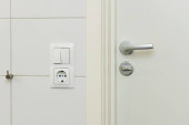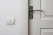 Białe drzwi z prosty chrom