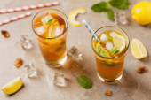 Zdjęcie "Ice herbaty z cytryna i mięta na tle drewnianych. Kopiować miejsca. Tło żywności. Tonowanie" może być wykorzystywane do celów osobistych i komercyjnych zgodnie z warunkami zakupionej licencji Royalty-free. Obraz jest dostępny do pobrania w jakości wysokiej rozdzielczości do 5760x3840.