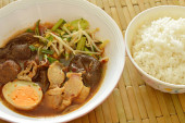 Zdjęcie "wnętrzności wieprzowe gotowane polewa jajko w zupie brązowy jeść kilka z ryżem" może być wykorzystywane do celów osobistych i komercyjnych zgodnie z warunkami zakupionej licencji Royalty-free. Obraz jest dostępny do pobrania w jakości wysokiej rozdzielczości do 5760x3840.