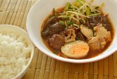 wnętrzności wieprzowe gotowane polewa jajko w zupie brązowy jeść kilka z ryżem