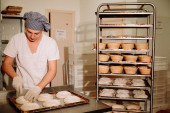 Zdjęcie "Przystojny baker w jednolite gospodarstwa tacą pełną świeżo upieczonego chleba w produkcji" może być wykorzystywane do celów osobistych i komercyjnych zgodnie z warunkami zakupionej licencji Royalty-free. Obraz jest dostępny do pobrania w jakości wysokiej rozdzielczości do 5760x3840.