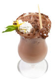 Pobłażliwy ekstremalne czekoladowych z ciasto brownie, truskawki, wiśnie i słomy z pianką mleka na górze w miękkim brązowym tle plastikową
