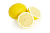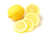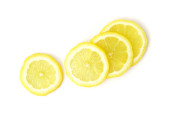 Zbliżenie świeży owoc cytryny i kromka na białym tle