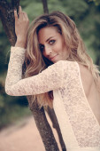 Piękna panna młoda, patrząc na kamery. Close-up portret kobiecy.