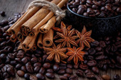 Kawa w ziarnach z cynamonem stanowi mieszankę popularnych napojów.