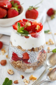 Zdjęcie "Chia budyń parfait Truskawkowe" może być wykorzystywane do celów osobistych i komercyjnych zgodnie z warunkami zakupionej licencji Royalty-free. Obraz jest dostępny do pobrania w jakości wysokiej rozdzielczości do 5760x3840.