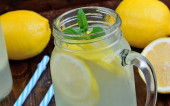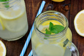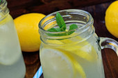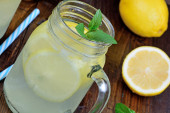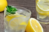 Świeża lemoniada organiczne z mennicy w słoiku mason na stole