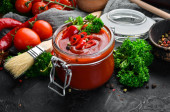 Zdjęcie "Sosie pomidorowym słoik i świeże pomidory" może być wykorzystywane do celów osobistych i komercyjnych zgodnie z warunkami zakupionej licencji Royalty-free. Obraz jest dostępny do pobrania w jakości wysokiej rozdzielczości do 5760x3840.