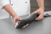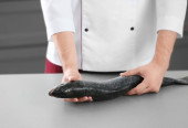 Zdjęcie "Przystojny sprzedający gospodarstwa świeże ryby na tle szarej ścianie" może być wykorzystywane do celów osobistych i komercyjnych zgodnie z warunkami zakupionej licencji Royalty-free. Obraz jest dostępny do pobrania w jakości wysokiej rozdzielczości do 5760x3840.