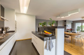 Zdjęcie "Nowoczesna kuchnia z okapem" może być wykorzystywane do celów osobistych i komercyjnych zgodnie z warunkami zakupionej licencji Royalty-free. Obraz jest dostępny do pobrania w jakości wysokiej rozdzielczości do 5760x3840.