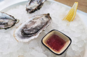 Kelner nalewa sos na ostrygi